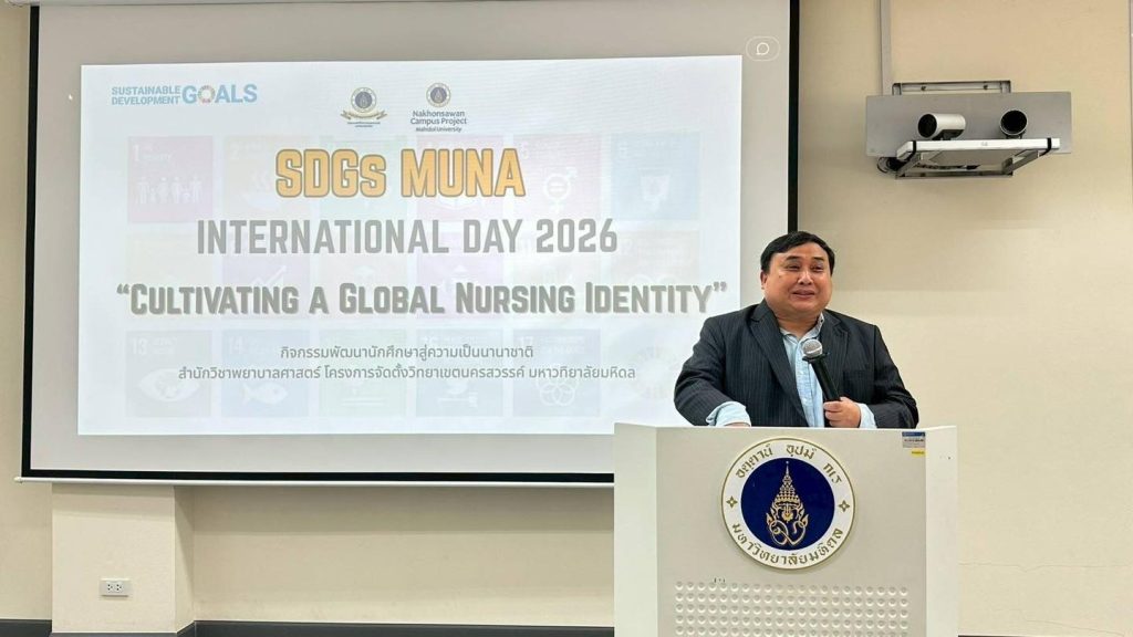 On January 21, 2026, Assoc. Prof. Dr. Weeradej Meeinkirt, Assistant to the Vice President for Research and International Relations, presided over the opening of “SDGs MUNA International Day 2026.” This year’s theme, “Cultivating a Global Nursing Identity,” highlights Mahidol University Nakhonsawan Campus’s (MUNA) commitment to fostering international competencies and global health awareness.
